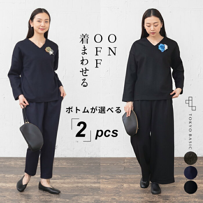 喪服としてだけでなく、結婚式・参観日・卒業式などすべてのフォーマルシーンに対応できるワイドパンツセットアップです。